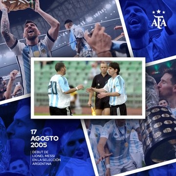 08月17日讯 20年前的今天(2005年8月17日),梅西在阿根廷对阵匈牙利的友谊赛中替补出场,完成个人在国家队的首秀。